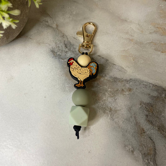 Keychain - Silicone Bead - Chicken - Olive Grey