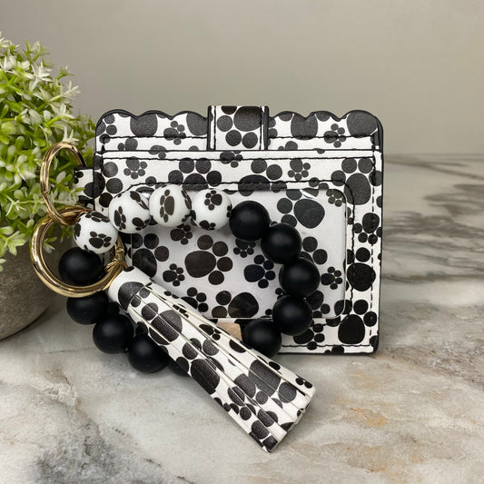 Silicone Bracelet Keychain with Scalloped Card Holder - Black Spots