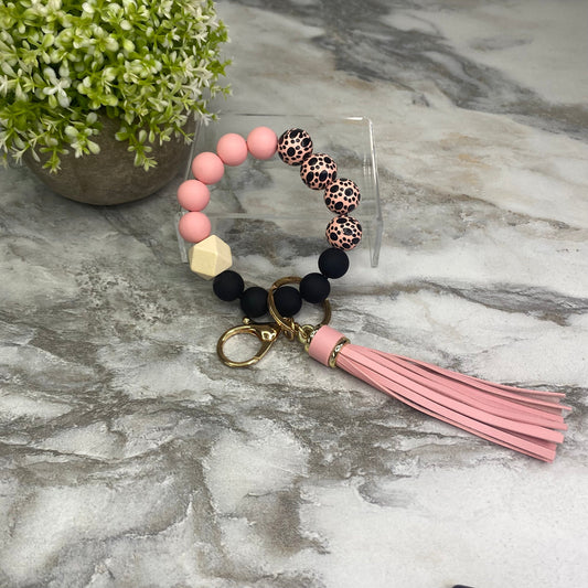 Silicone Bracelet Keychain - Pink Bow