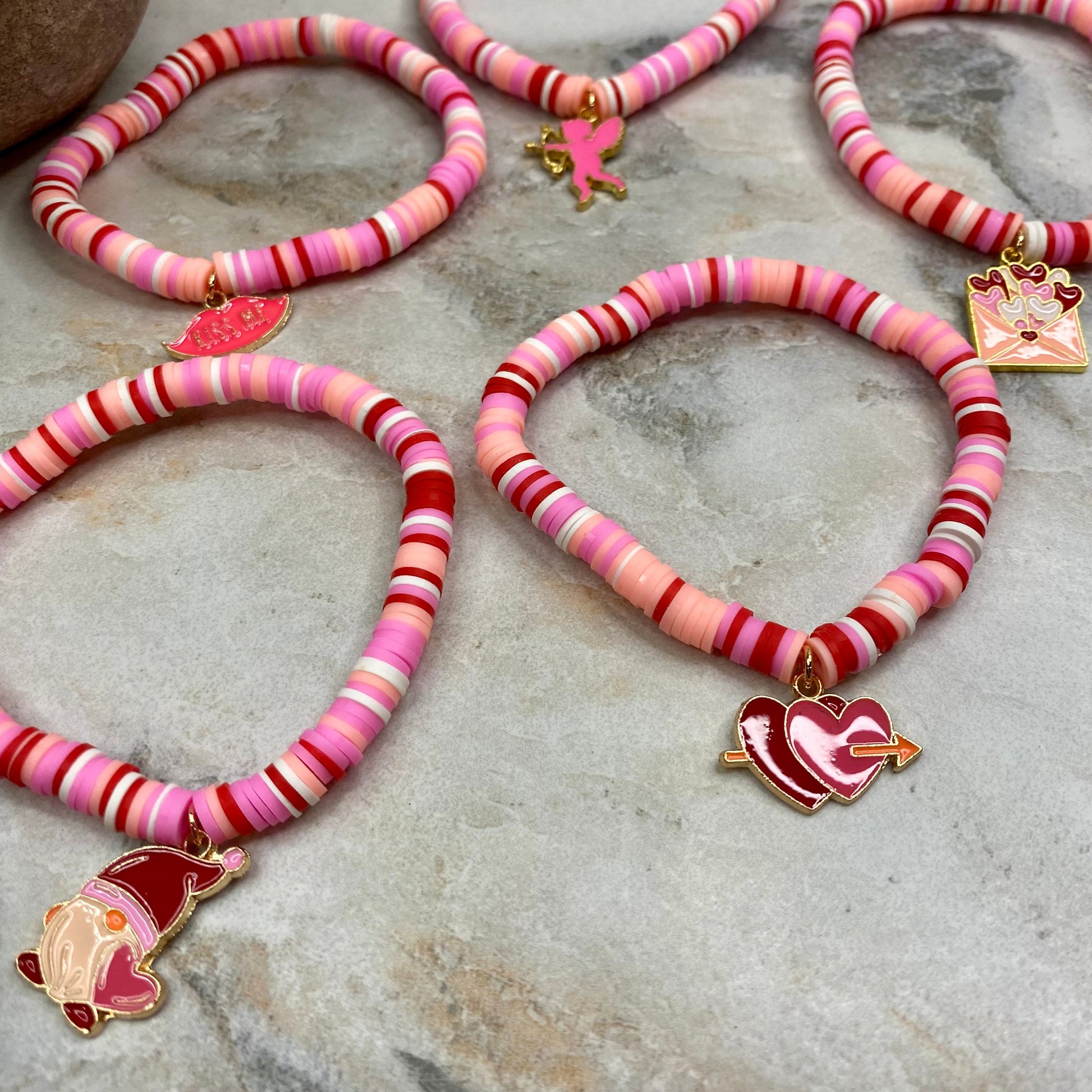 Bracelet - Clay + Charm - Love Red & Pink Charm