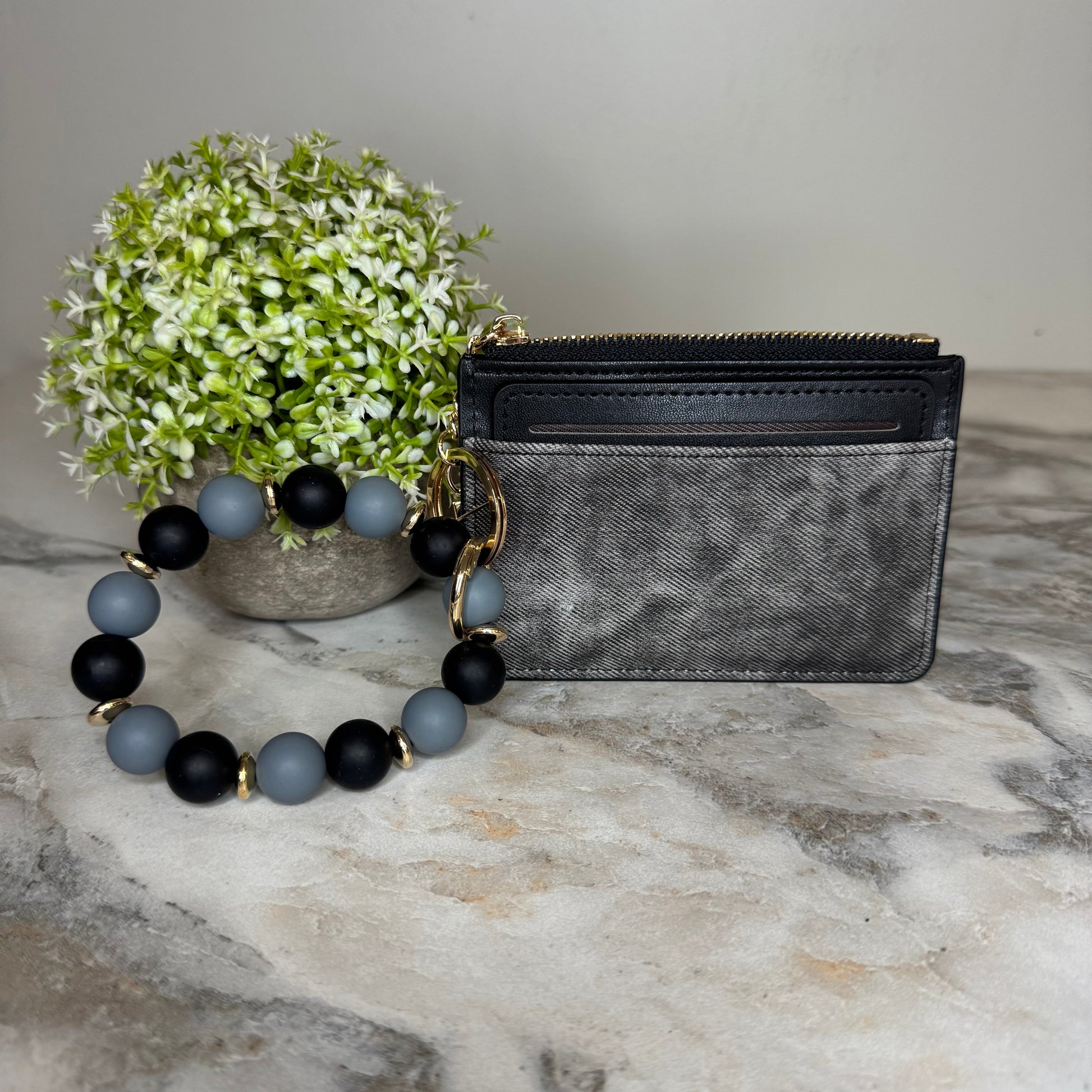 Denim Suede Bracelet Keychain & Card Holder Wallet - PREORDER