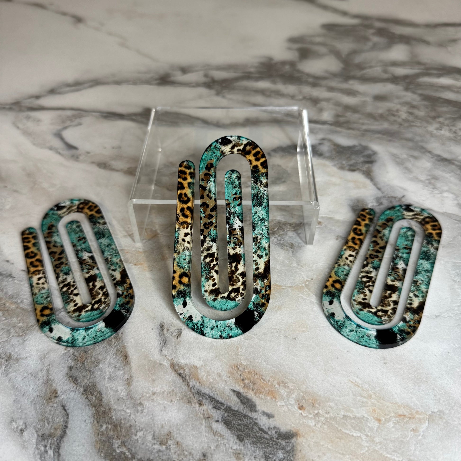 Jumbo Paperclip - Turquoise Cow Animal Print