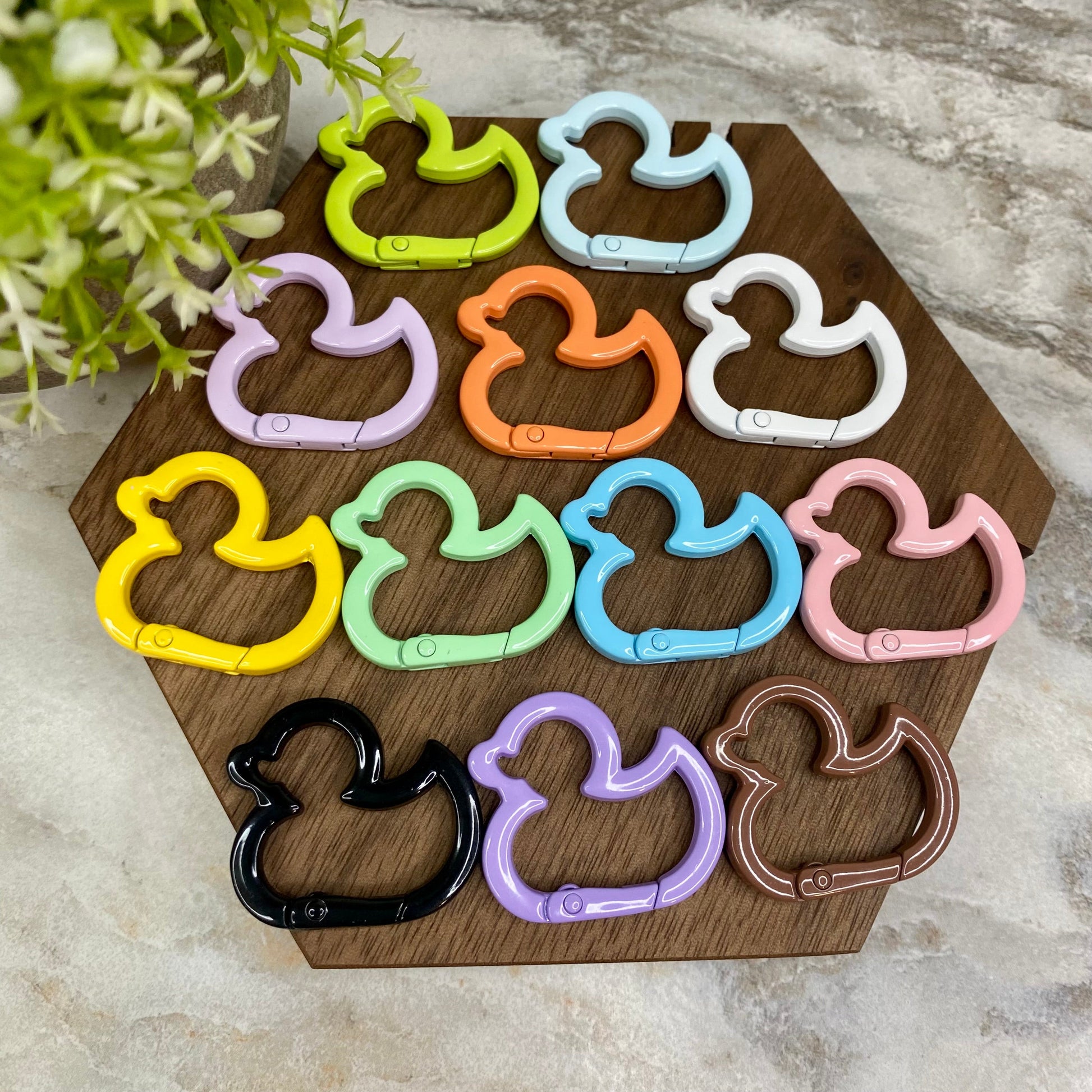 Duck-shaped keychain ring clasp. Randomly selected from colors above.