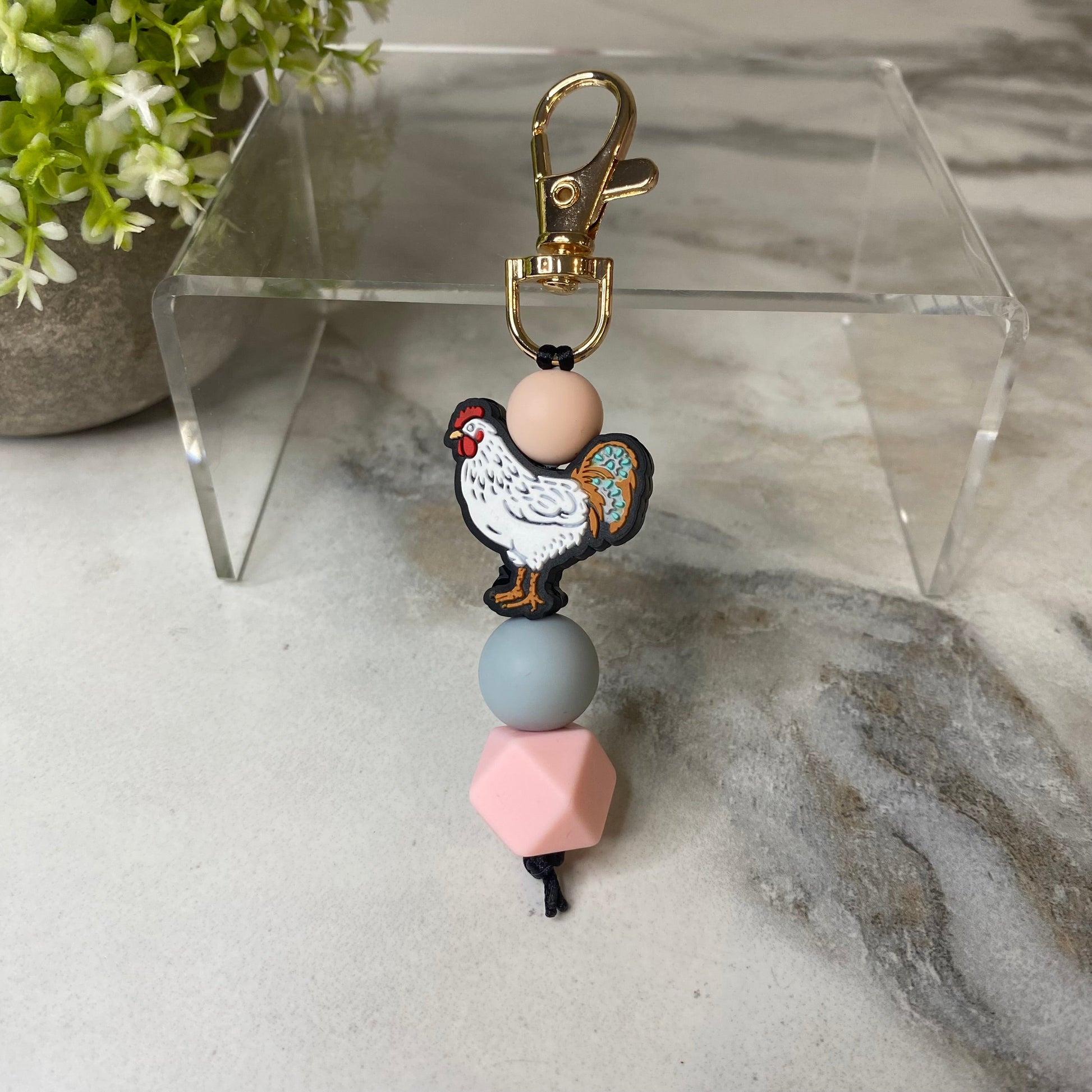 This adorable keychain holds so many cute beads and is approximately 2.5” long plus a gold clip.