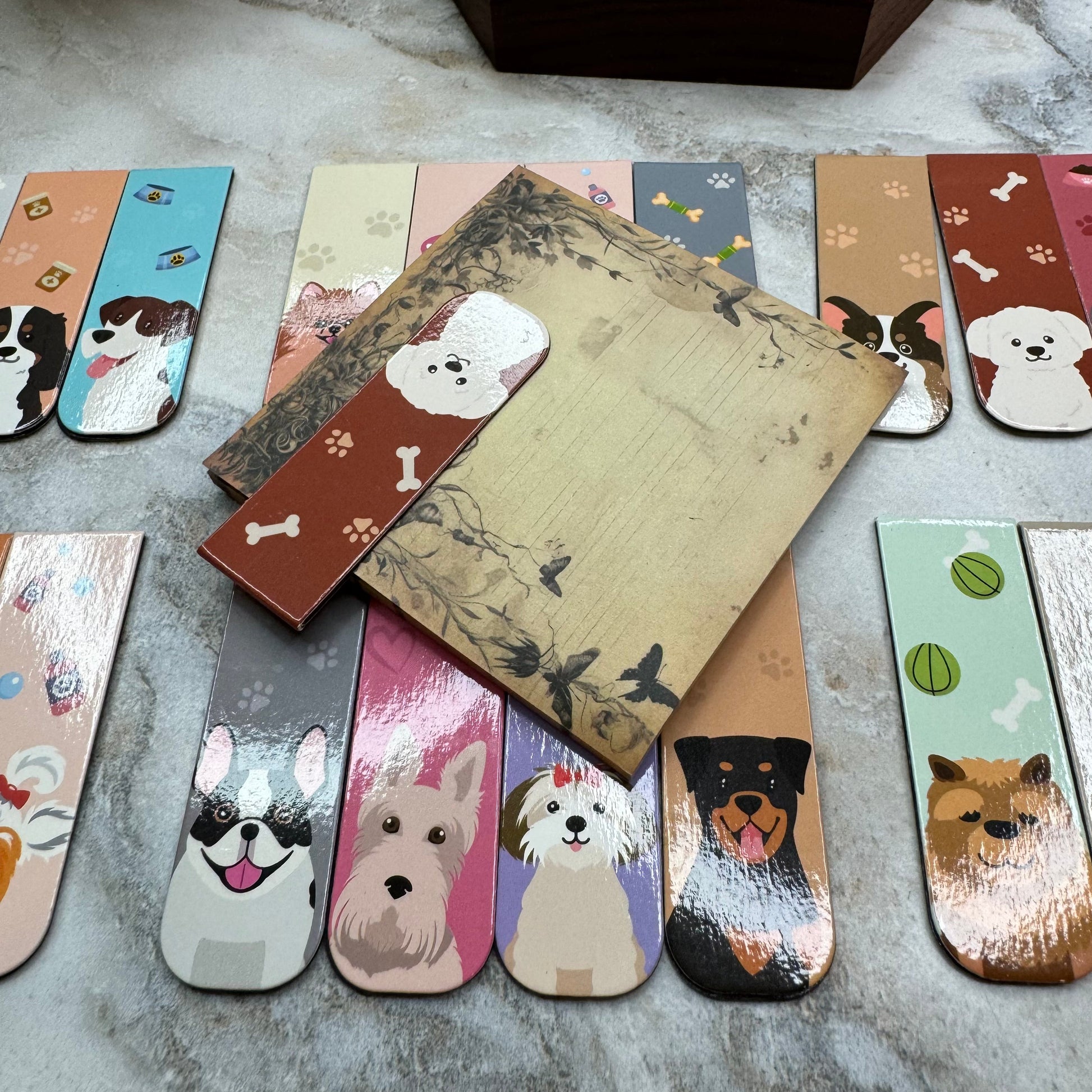 Measures 2.5”. Magnetic, secures around one page to use as a bookmark.