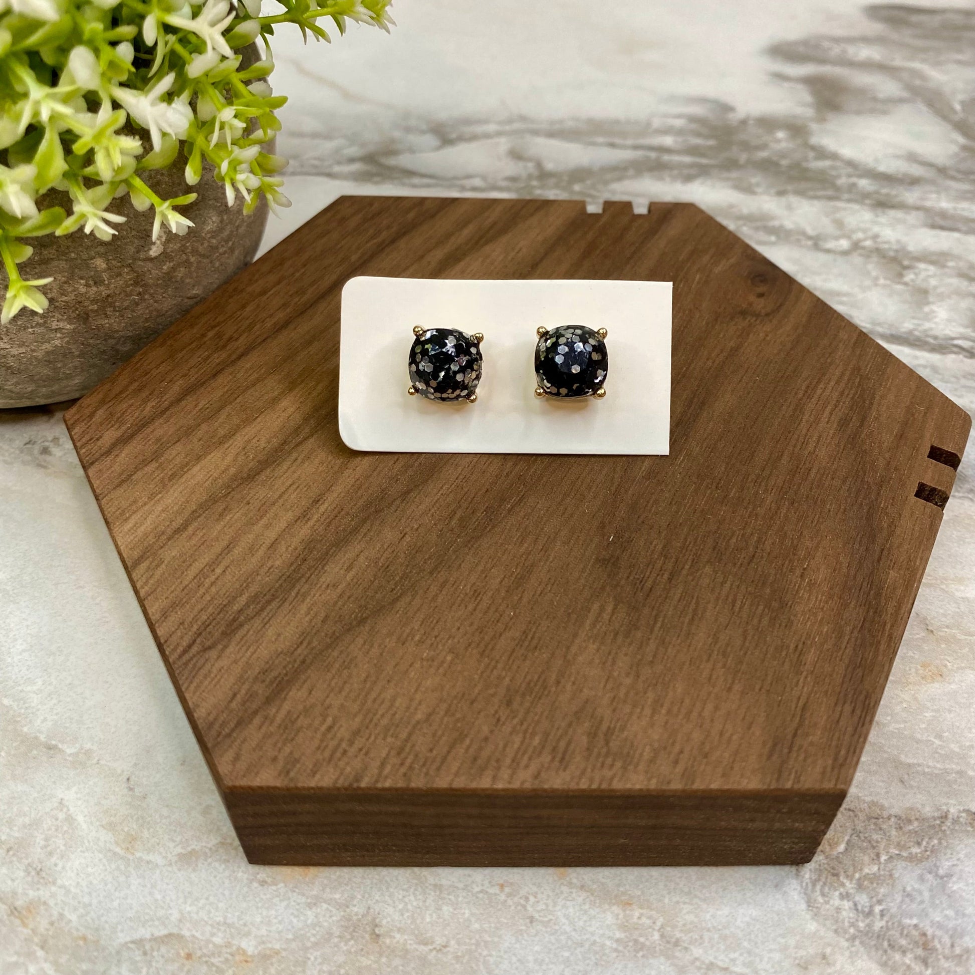 Metal base with acrylic glitter smooth studs, approximately 1/2”
