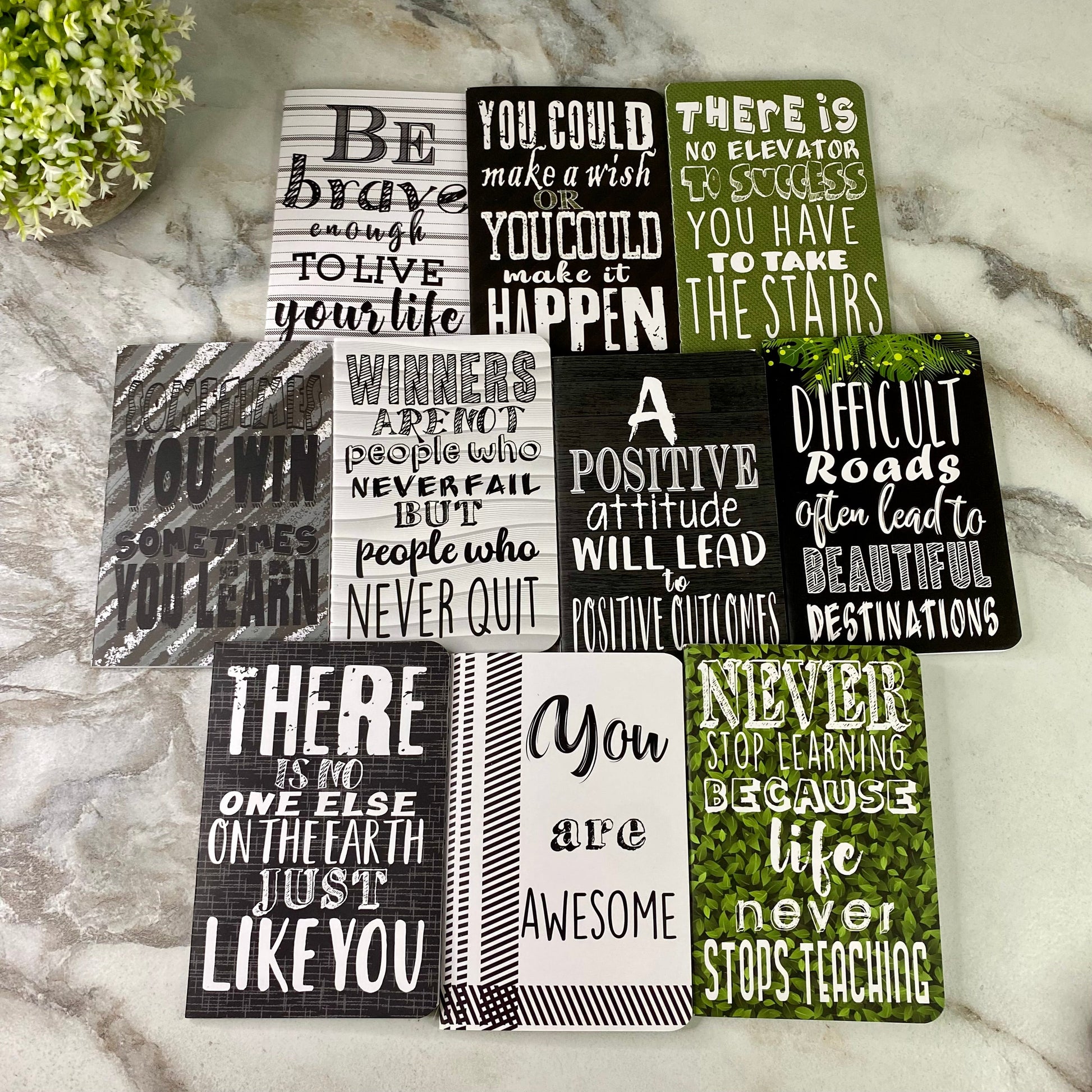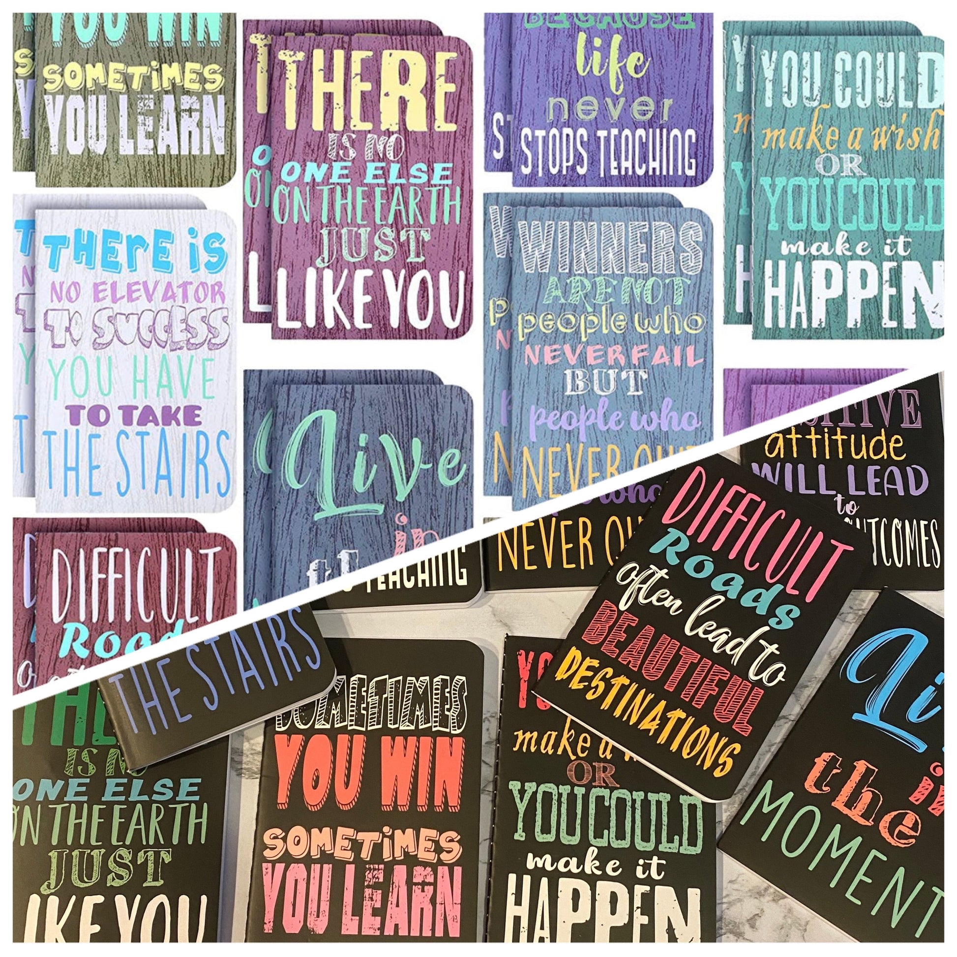 Motivational Mini Notebooks in assorted quotes. About 5”x3” with 30 lined pages. Sold as single item.