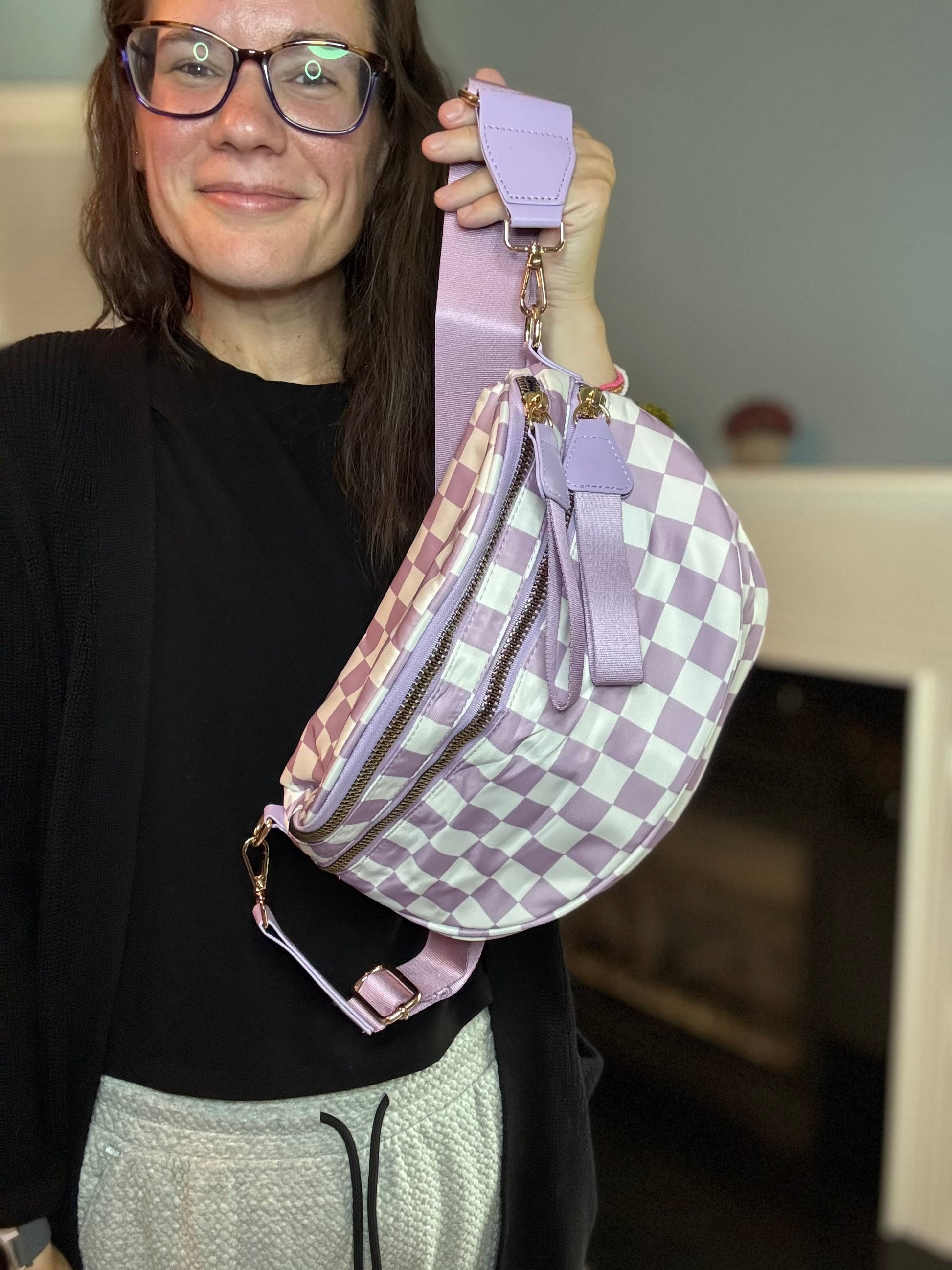 The Roni Nylon Crossbody - Checkered Light Purple