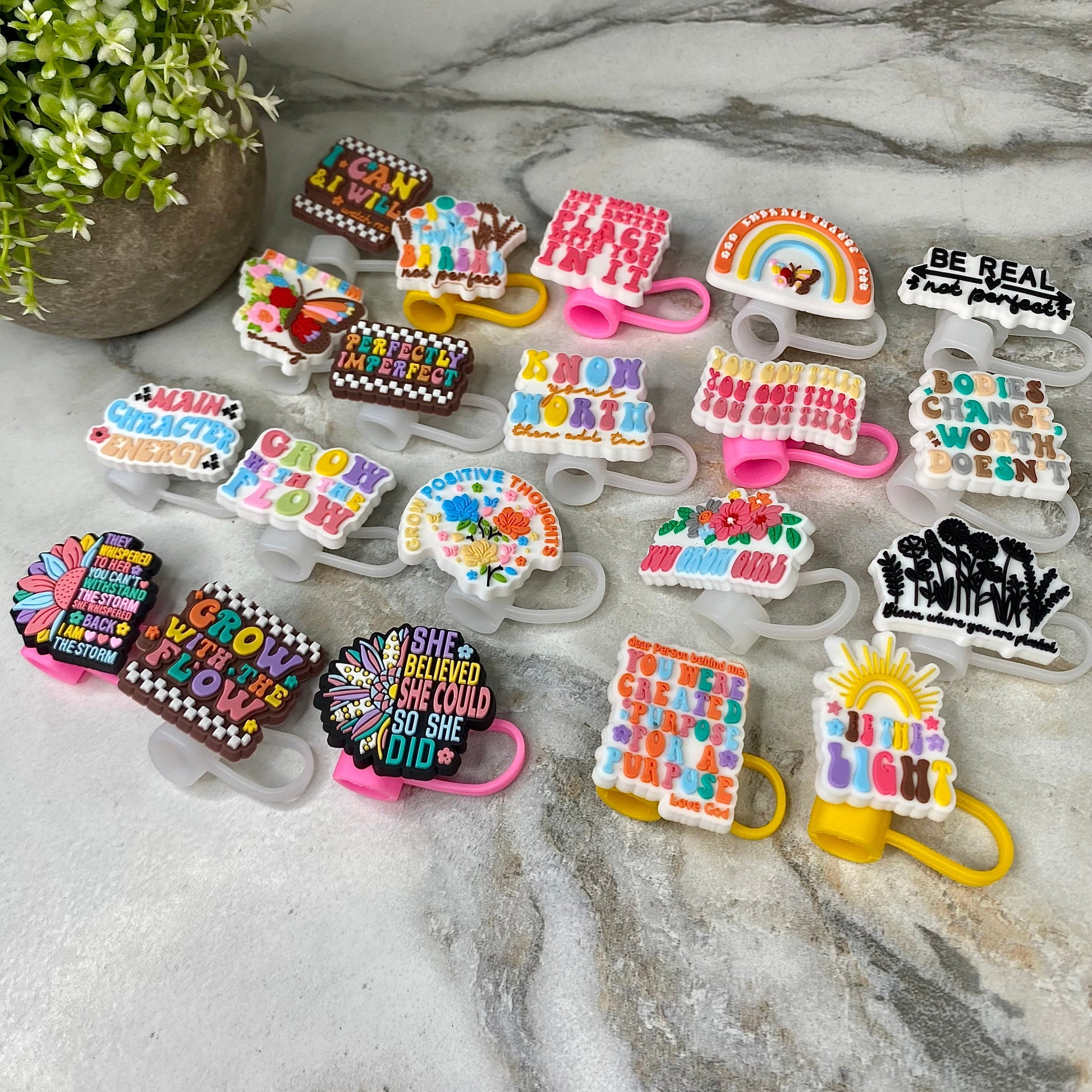 Silicone Straw Toppers Tumbler - Inspirational Mix