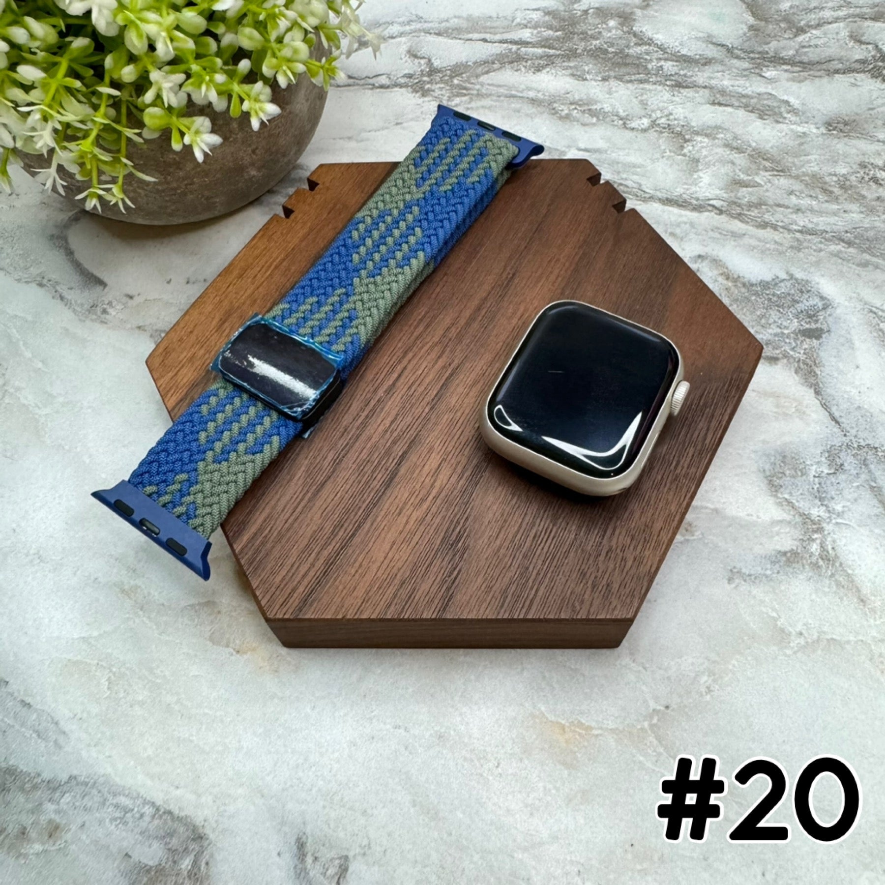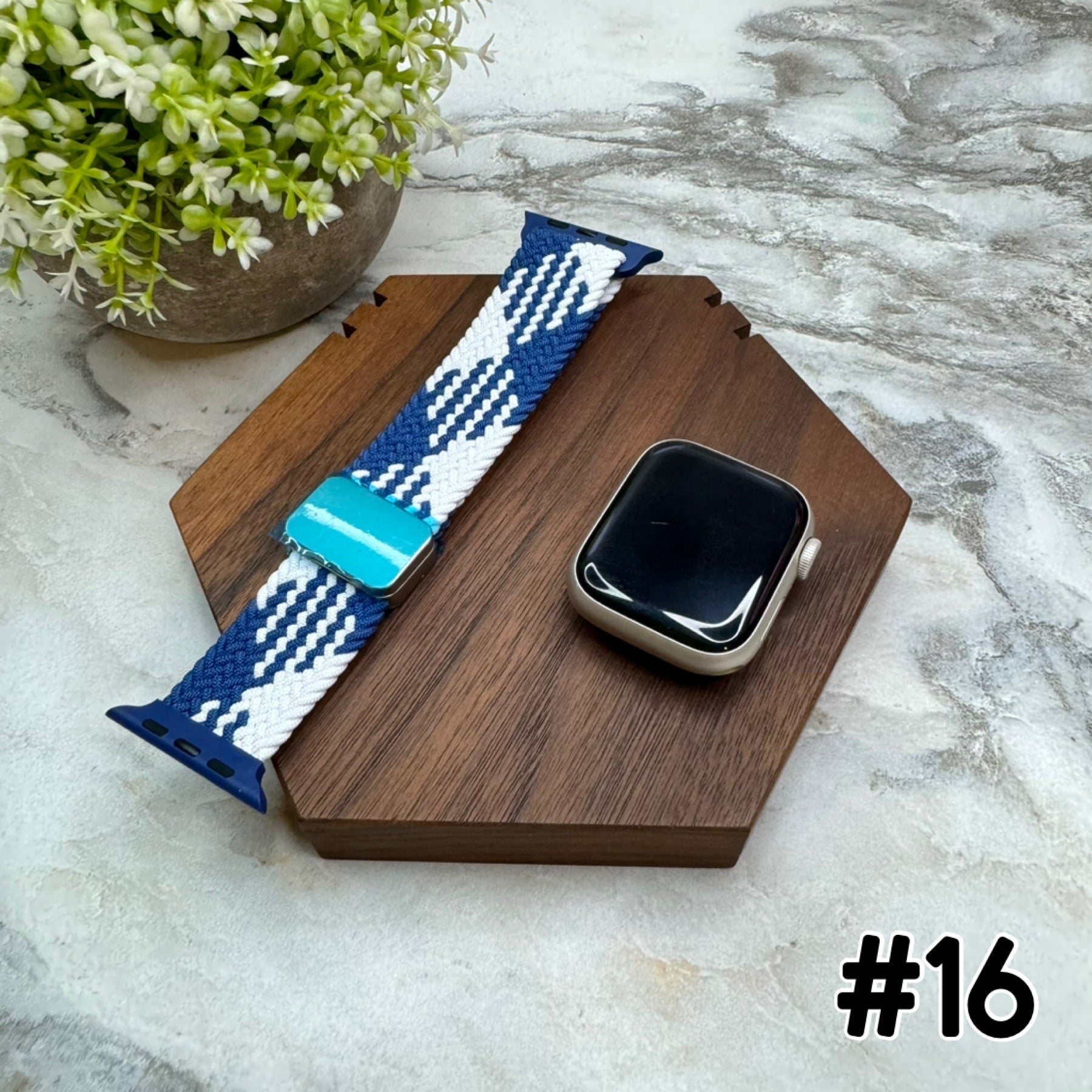 Watch bands for apple watches. Comes in sizes 38/40/41mm. Please note: the blue on the hardware is just a scratch resistant sticker.